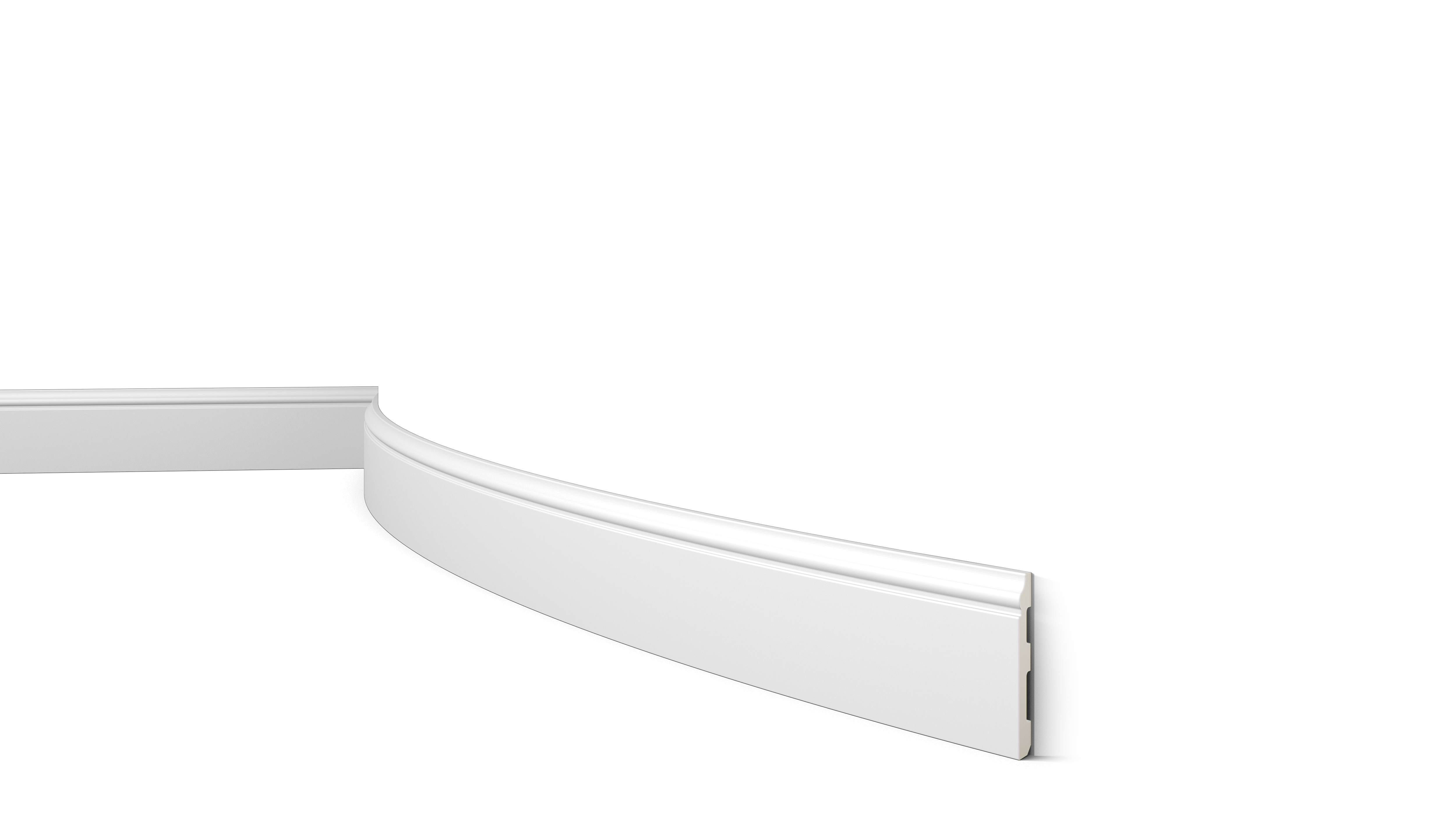 Das Design der FL1 FLEX WALLSTYL® Sockelleiste ist mit einer Aussparung auf der Rückseite versehen, um Kabel zu verbergen und Unebenheiten zu kaschieren, so dass ein makelloses Endergebnis erzielt wird. Das Element wird vorgrundiert geliefert, bereit für den abschließenden Farbanstrich. Einfach zu schneiden, zu verkleben und zu montieren. Die flexible Leiste eignet sich perfekt für gewölbte Wände.