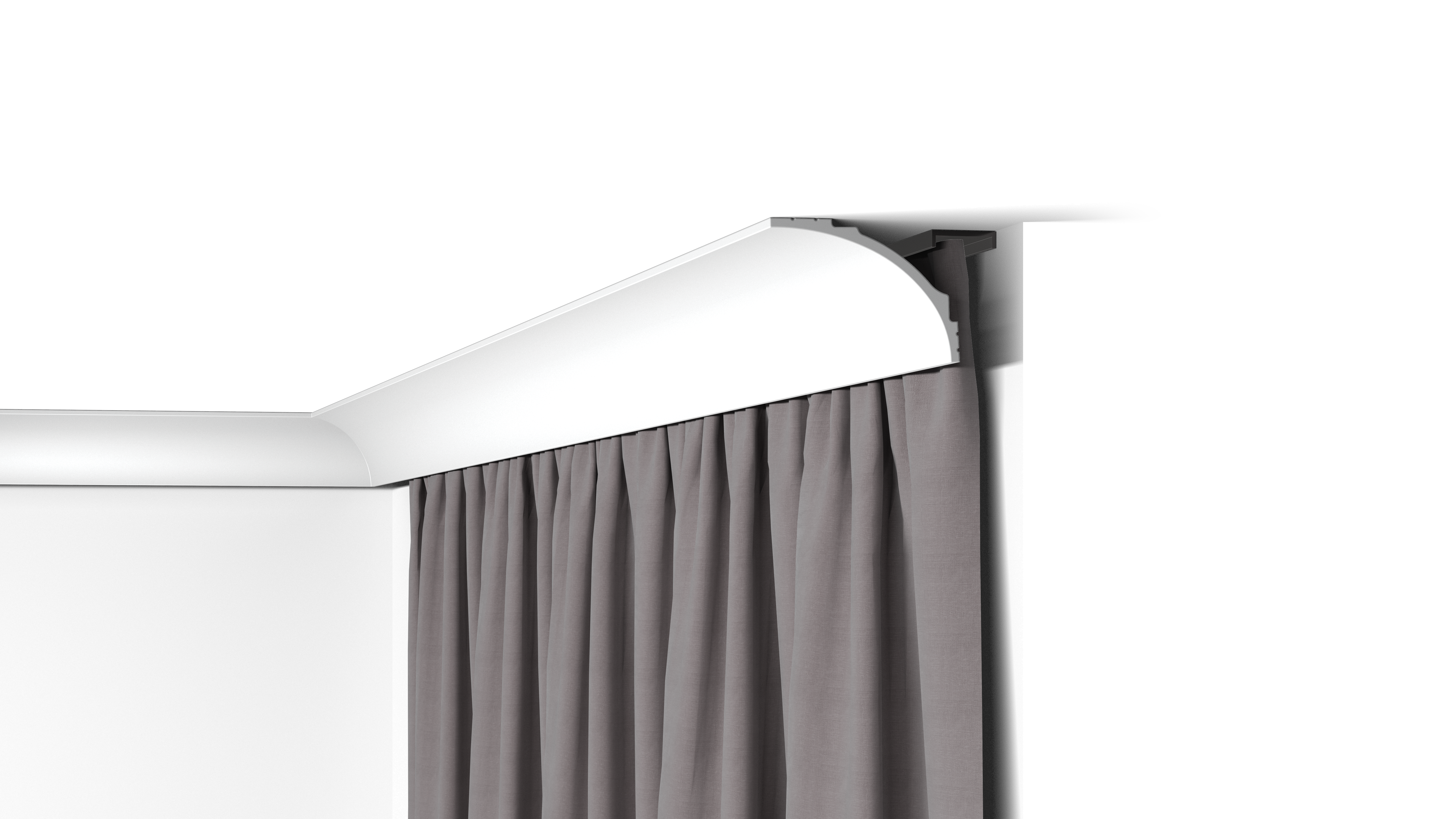 Die Gardinenleiste IL18 WALLSTYL® aus der Kollektion für indirekte Beleuchtung und Deckenleisten ist zeitlos schön. Sie zeichnet sich durch elegante Kurven und klare Linien aus, die für ein makelloses Erscheinungsbild sorgen. In Kombination mit LED-Beleuchtung schafft es eine gemütliche, warme Atmosphäre und verleiht Innenräumen einen entschieden modernen Look. Die aus hochdichtem Polystyrol gefertigte IL18 WALLSTYL® wurde mit dem Gedanken an Minimalismus entwickelt und verbirgt geschickt die Vorhangschienen für ein nahtloses modernes Design.