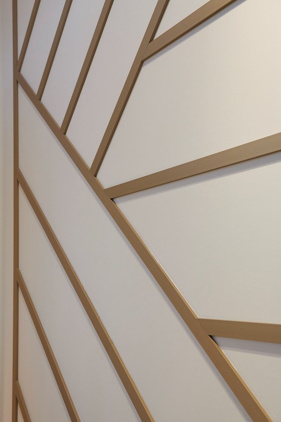 Die WD5 WALLSTYL® ist vielseitig einsetzbar und ermöglicht eine kreative und individuelle Wandgestaltung. Das minimalistische Design macht die WD5 zu einem Dekorationselement, das auf verschiedene Weise an der Wand oder Decke installiert werden kann, um Rahmen und Wandfelder zu gestalten oder bestimmte Wandabschnitte in Szene zu setzen. Ihre geometrische Form folgt den klaren Linien des zeitgenössischen Designs und verleiht dem Innenraum den letzten Schliff.