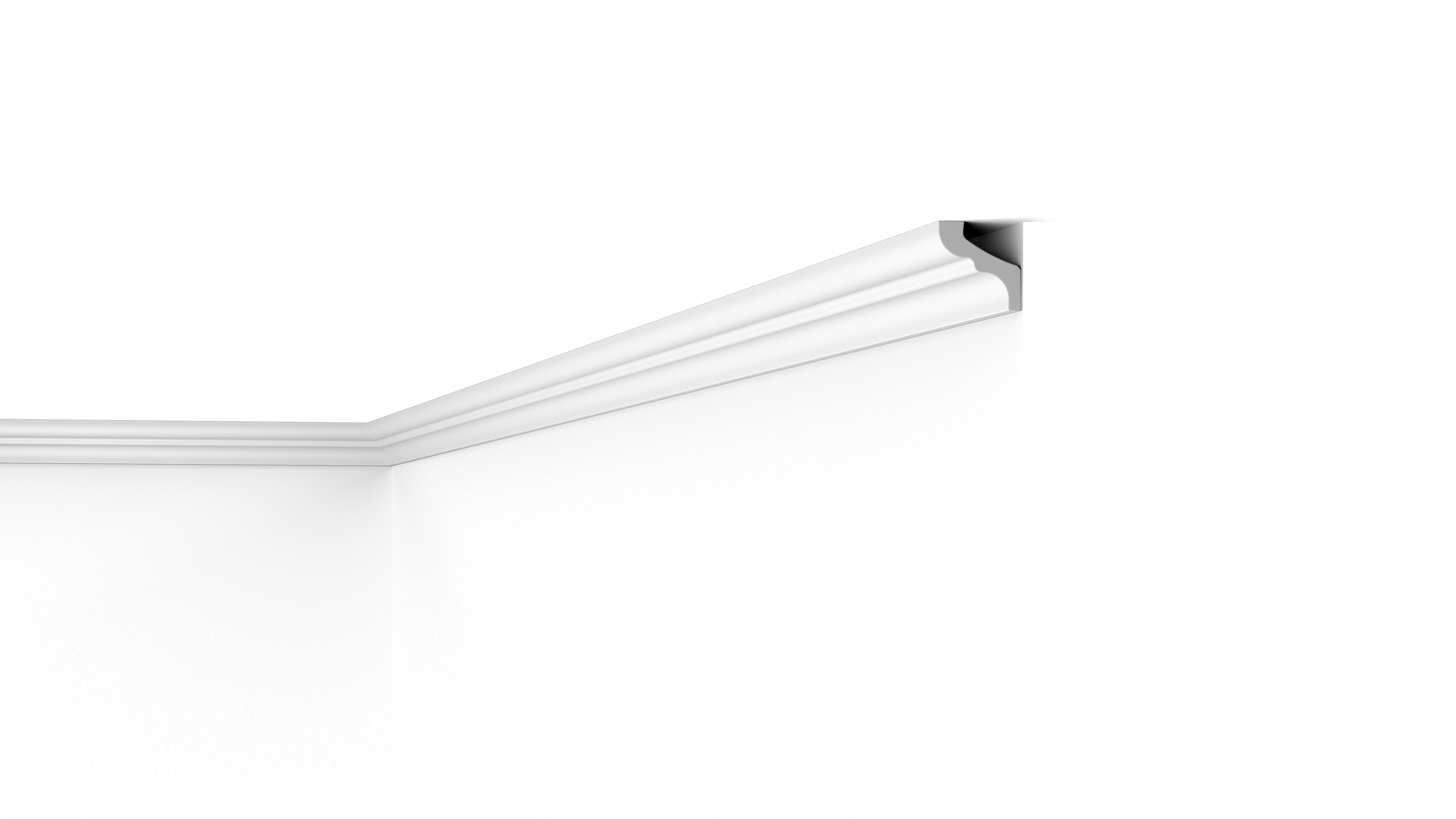 Sleek curvature and linear simplicity work together to develop a visually pleasing interior feature. The F NOMASTYL® creates a seamless transition between wall and ceiling. The F coving combines modern minimalism with traditional design. This versatility ensures the F Cornice will be a stylish addition in any home or business space.
