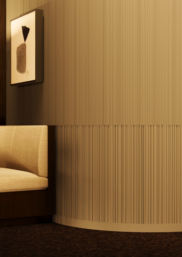 ALLEGRETTINO FLEX apporte le rythme dynamique du design ALLEGRETTINO aux surfaces courbes telles que les murs arrondis, les plafonds ou les colonnes. Avec sa répétition fréquente d'un motif linéaire et asymétrique, le panneau mural ALLEGRETTINO FLEX crée une surface subtilement structurée, raffinée et délicate qui rehausse le caractère architectural de tout intérieur. Le motif, créé par le designer belge Bertrand Lejoly, joue avec la lumière et les ombres pour ajouter de la profondeur et du mouvement même aux surfaces les plus irrégulières. La solution idéale pour obtenir des décors tridimensionnels forts, tant sur des applications planes que courbes.