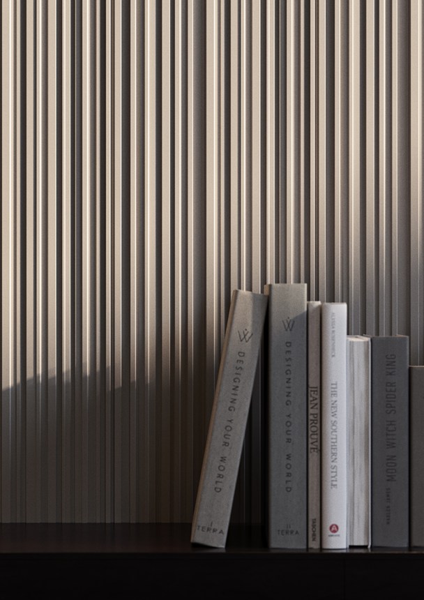 ALLEGRETTO (en italien ; un peu animé, vif, gai) désigne un tempo musical caractérisé par sa légèreté ainsi que son assertivité. Le panneau mural ALLEGRETTO, conçu par le designer belge Bertrand Lejoly, présente un motif linéaire, audacieux et asymétrique permettant des décors muraux dynamiques, modernes et captivants. Son motif imprévisible, d'inspiration minérale, attire le regard et apporte une texture riche aux murs, aux plafonds et même aux meubles. L'élément décoratif est également marqué par des traits de coupe à l'arrière, ainsi, le motif peut être déplacé et réarrangé, ce qui élargi considérablement les possibilités de personnalisation.