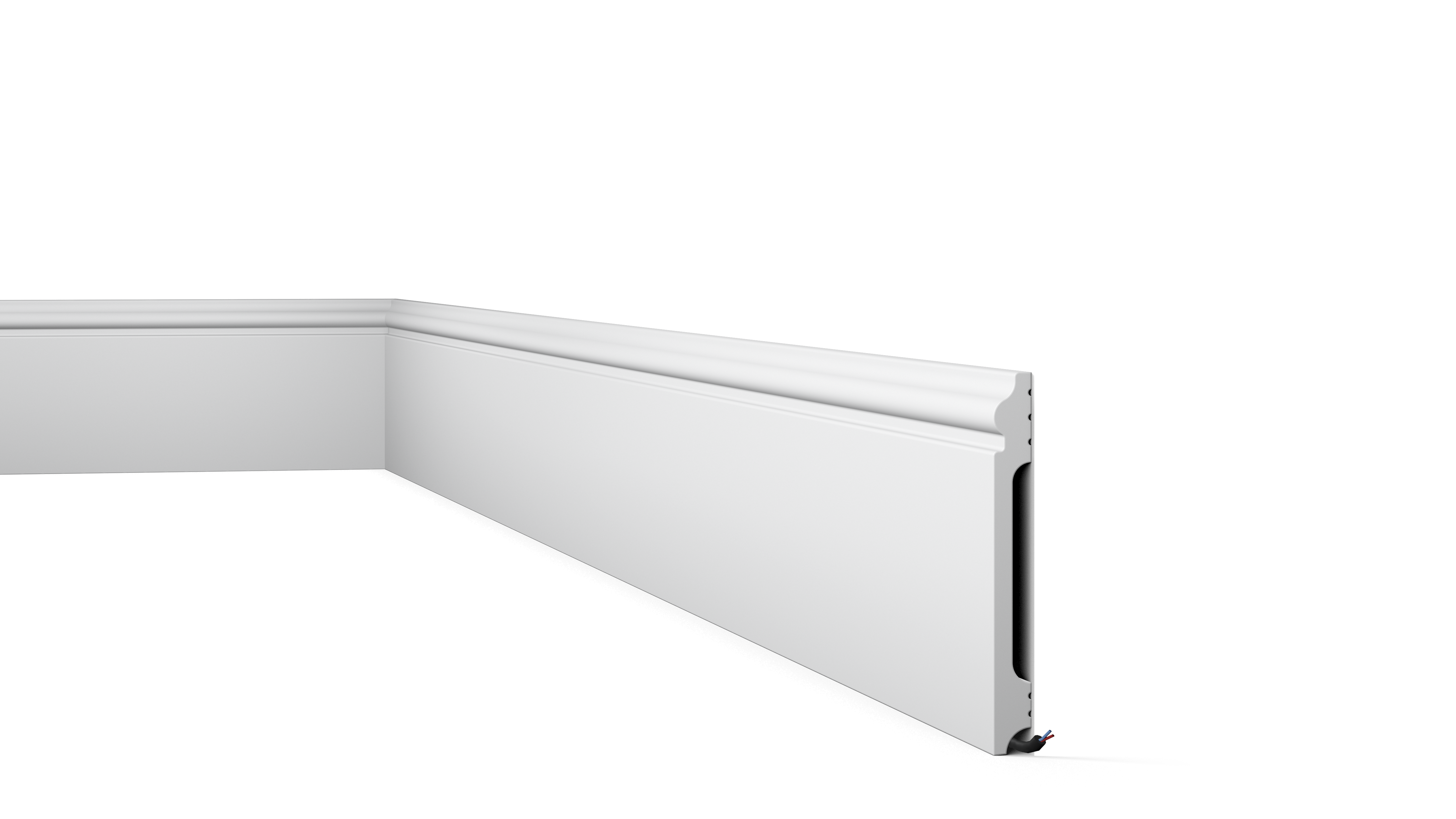 Un petit espace est prévu à l’arrière de la FL17 pour dissimuler des câbles. La plinthe permet aussi de dissimuler des fissures et des transitions disgracieuses. La plinthe FL17 est prête à peindre grâce à la couche de primaire appliquée en usine. Grâce au matériau résistant à l’humidité, la FL17 convient aux espaces humides comme les salles de bains, les spas et les cuisines.