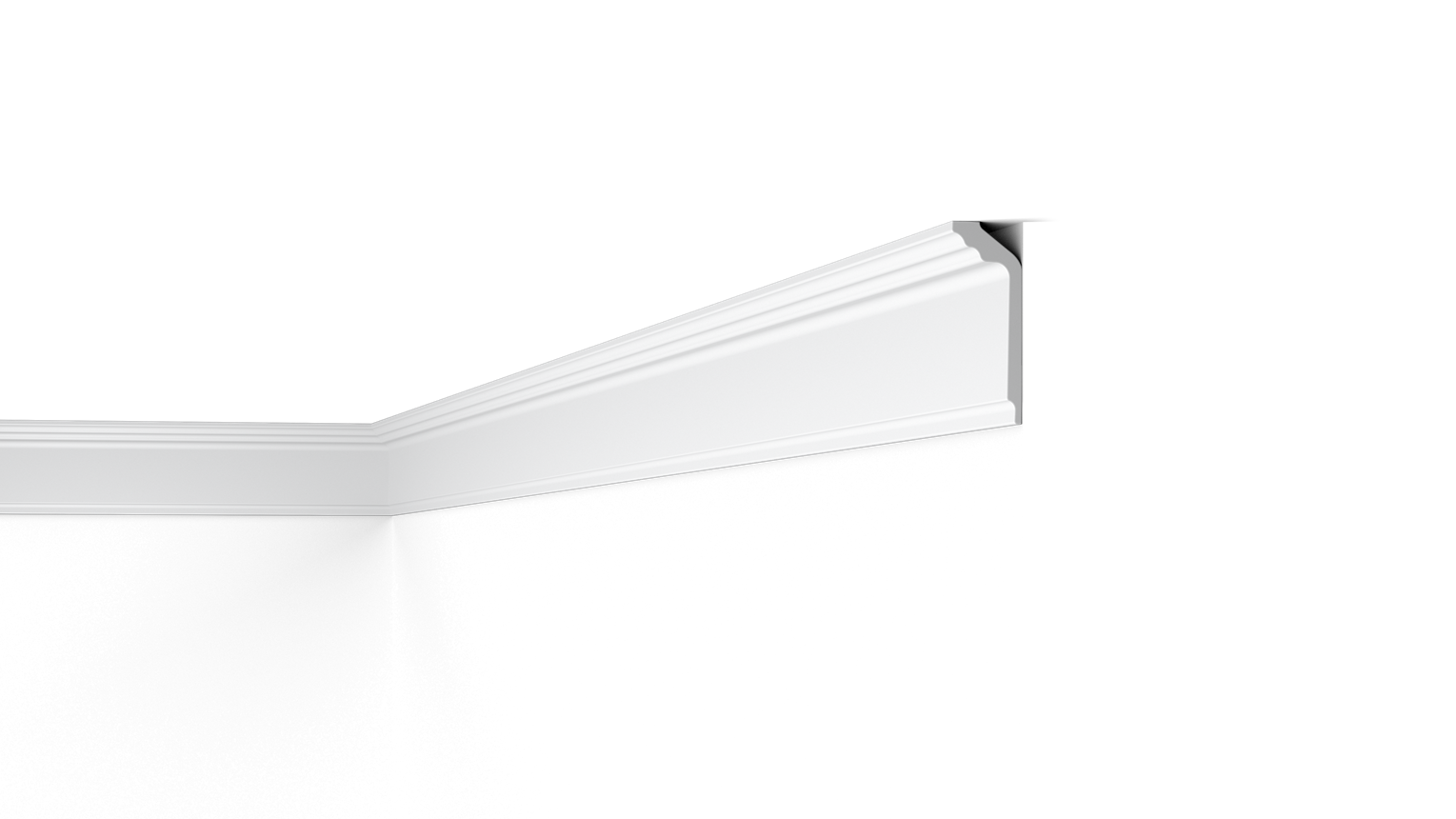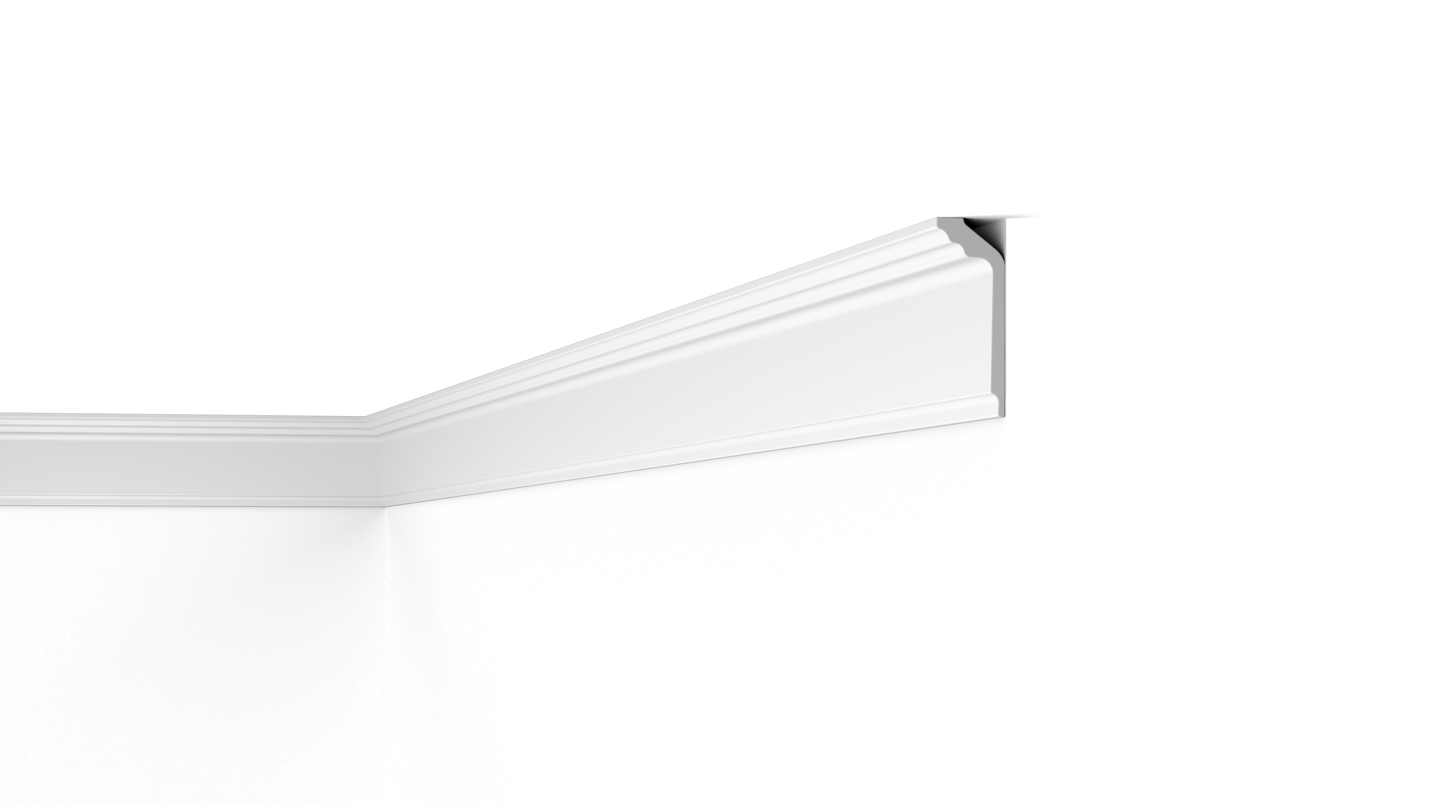 Le matériau résistant à l’humidité de la moulure de plafond GT convient aux espaces humides. Un petit espace est prévu à l’arrière de la moulure de plafond pour dissimuler des câbles, des fissures et des transitions disgracieuses. La GT est entièrement recyclable.