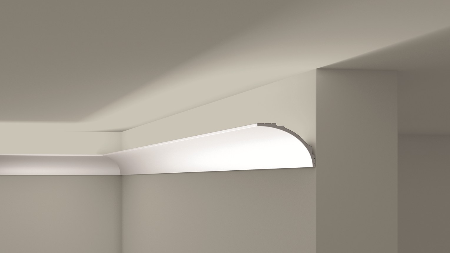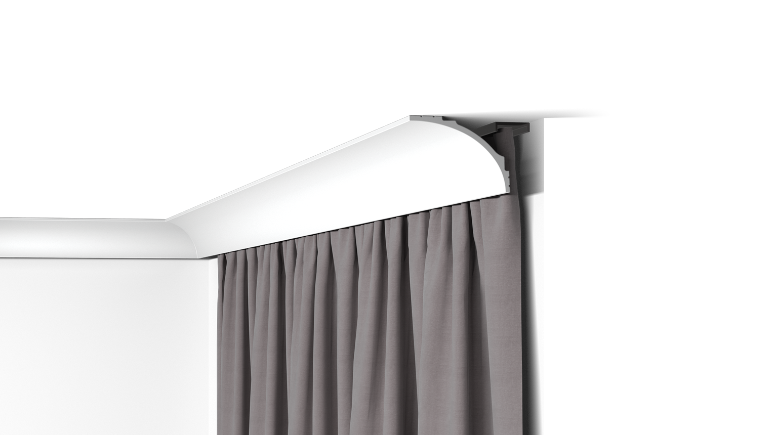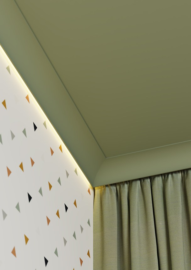 Un noyau gris rend la moulure de rideau IL18 WALLSTYL® opaque et un logement à l'arrière est spécialement conçu pour accueillir une bande LED. Pour installer la corniche, il vous suffit de la fixer à l'aide de colle. Déjà apprêté, le profilé est prêt à recevoir sa couche finale de peinture. Le profilé IL18 WALLSTYL® est confectionné dans un matériau 100 % recyclable, léger, étanche et résistant aux chocs.