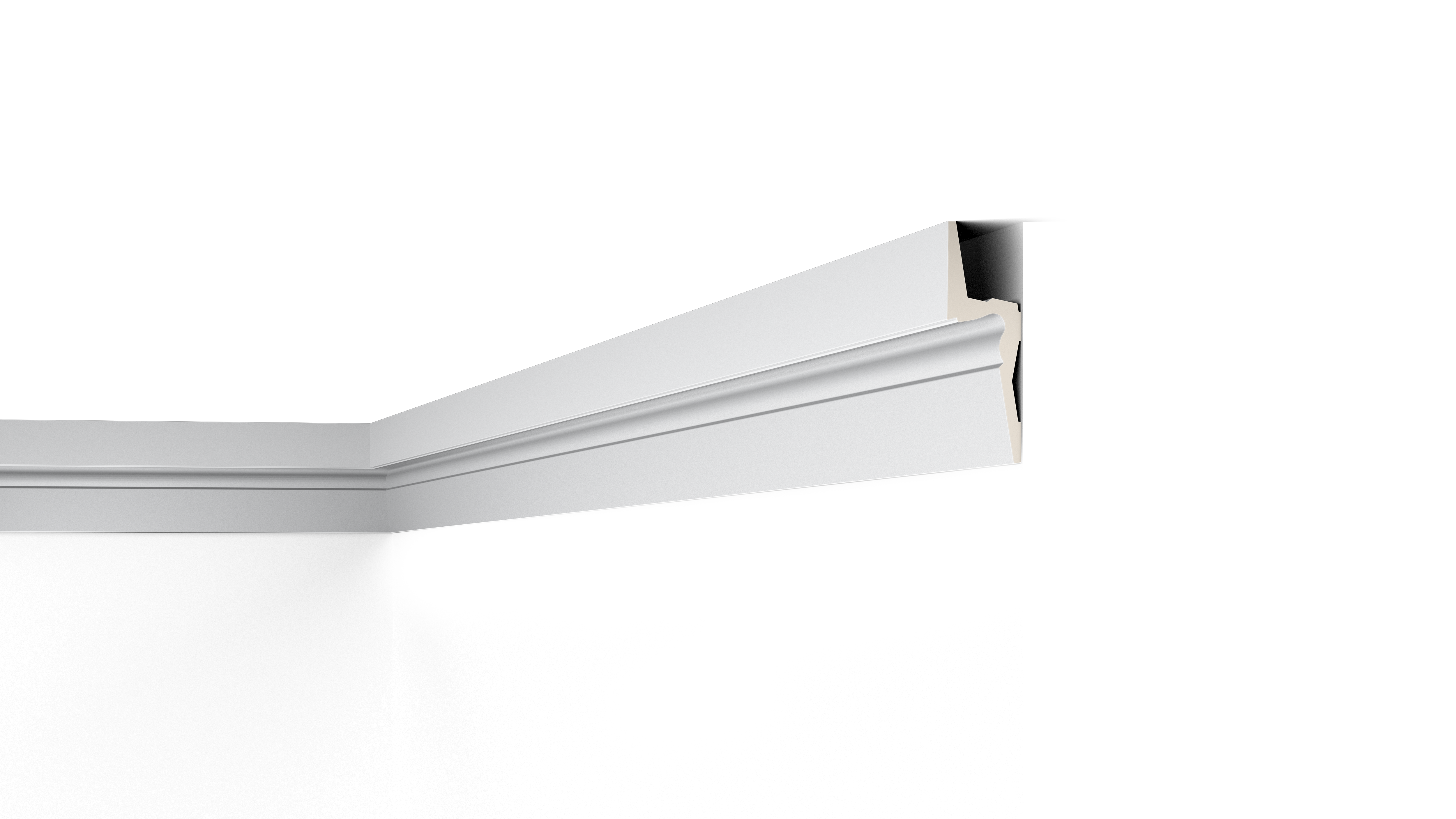 Un espace est prévu à l’arrière de la moulure IL9 pour dissimuler les bandes d’éclairage LED et réaliser une source d’éclairage indirect.La IL9 est pré-peinte en usine avec une couche de primaire et prête à être posée avec la colle ADEFIX® PLUS. Une fois installée, la IL9 peut être peinte dans sa couleur finale.