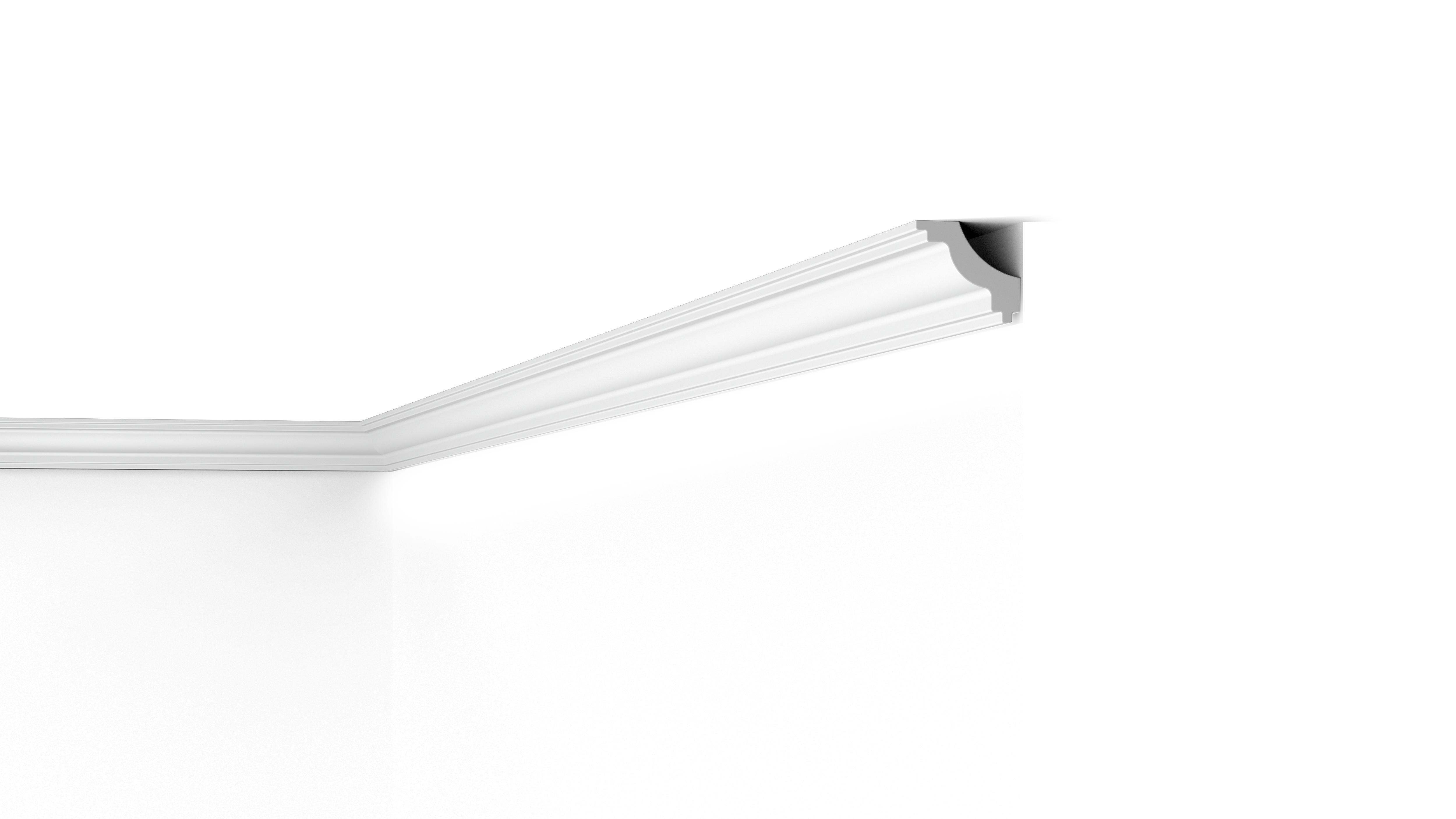 Cette petite moulure élégante complète parfaitement les éléments caractéristiques des intérieurs traditionnels. La combinaison de détails linéaires et de la courbe lisse de la moulure de plafond J NOMASTYL® confère une finition professionnelle à un intérieur.