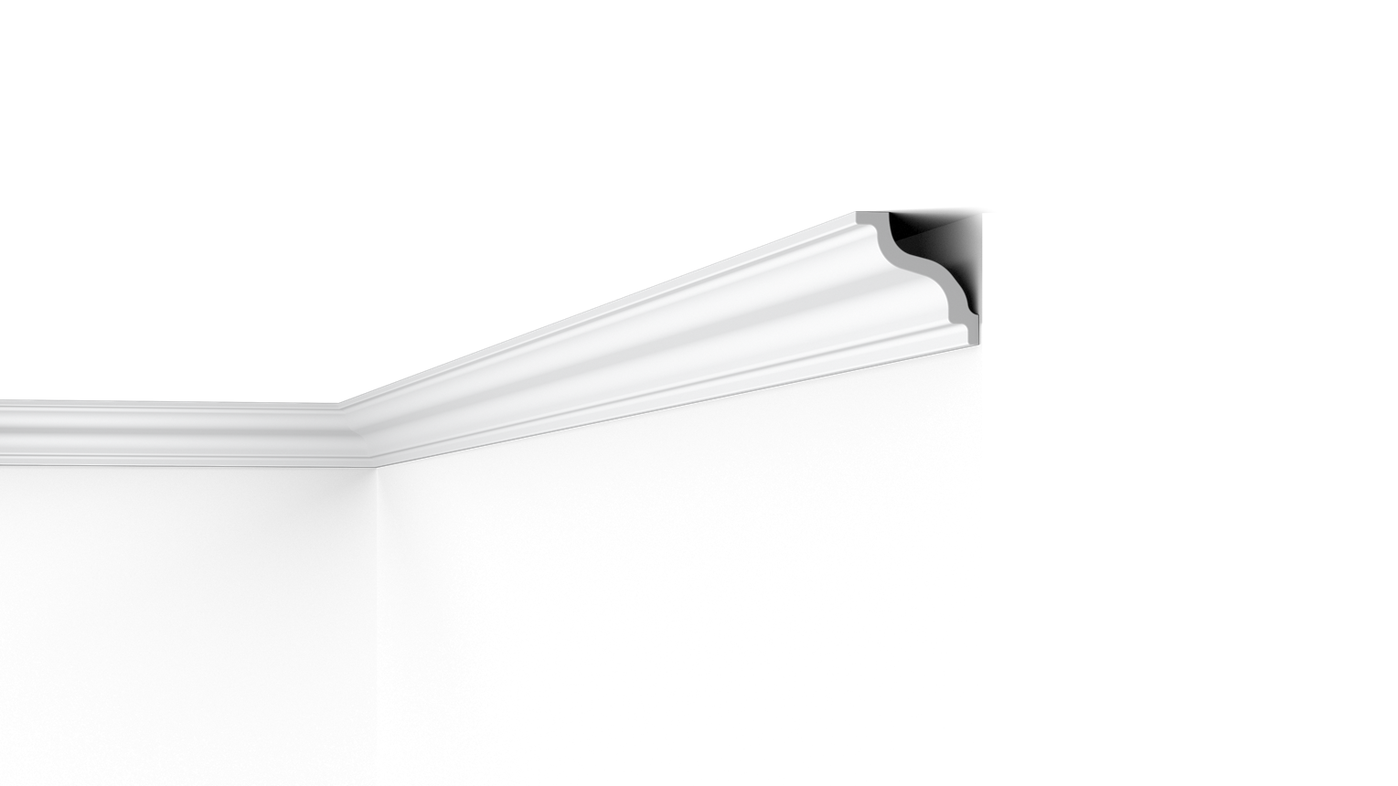 La moulure de plafond K NOMASTYL® est résistante à l’humidité et est idéale pour les espaces humides. Un petit espace est prévu à l’arrière de la moulure pour dissimuler des câbles, des fissures et des transitions disgracieuses.