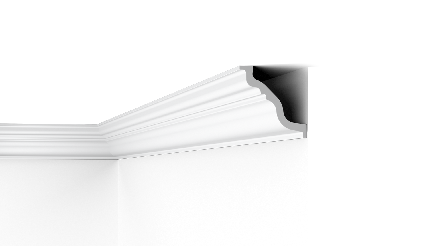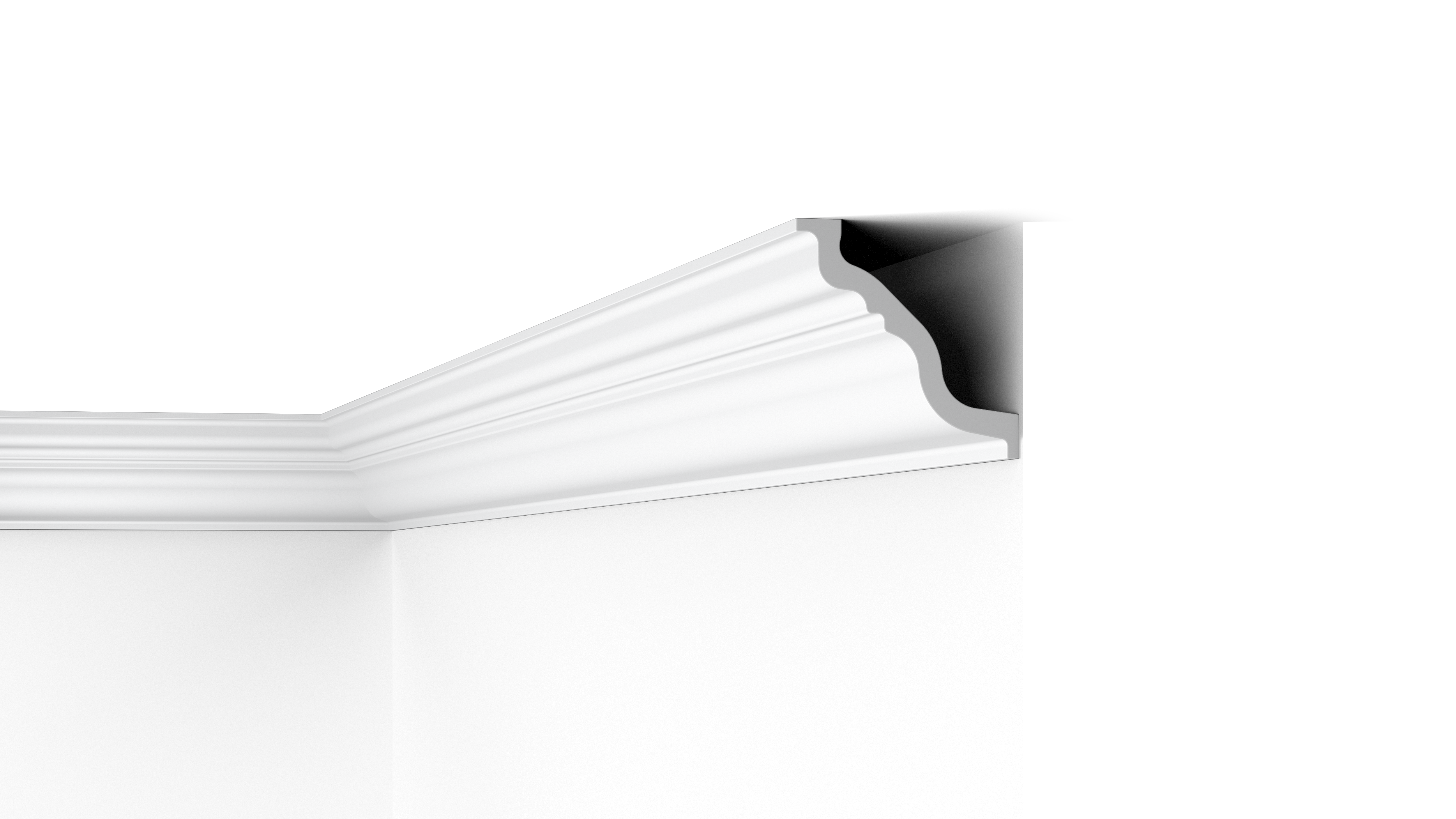 Un large espace est prévu à l’arrière de la moulure TL, idéal pour dissimuler des câbles, des fissures et des transitions disgracieuses. La TL est en polystyrène résistant à l’humidité et peut donc être utilisée dans les espaces humides. La moulure TL est entièrement recyclable.