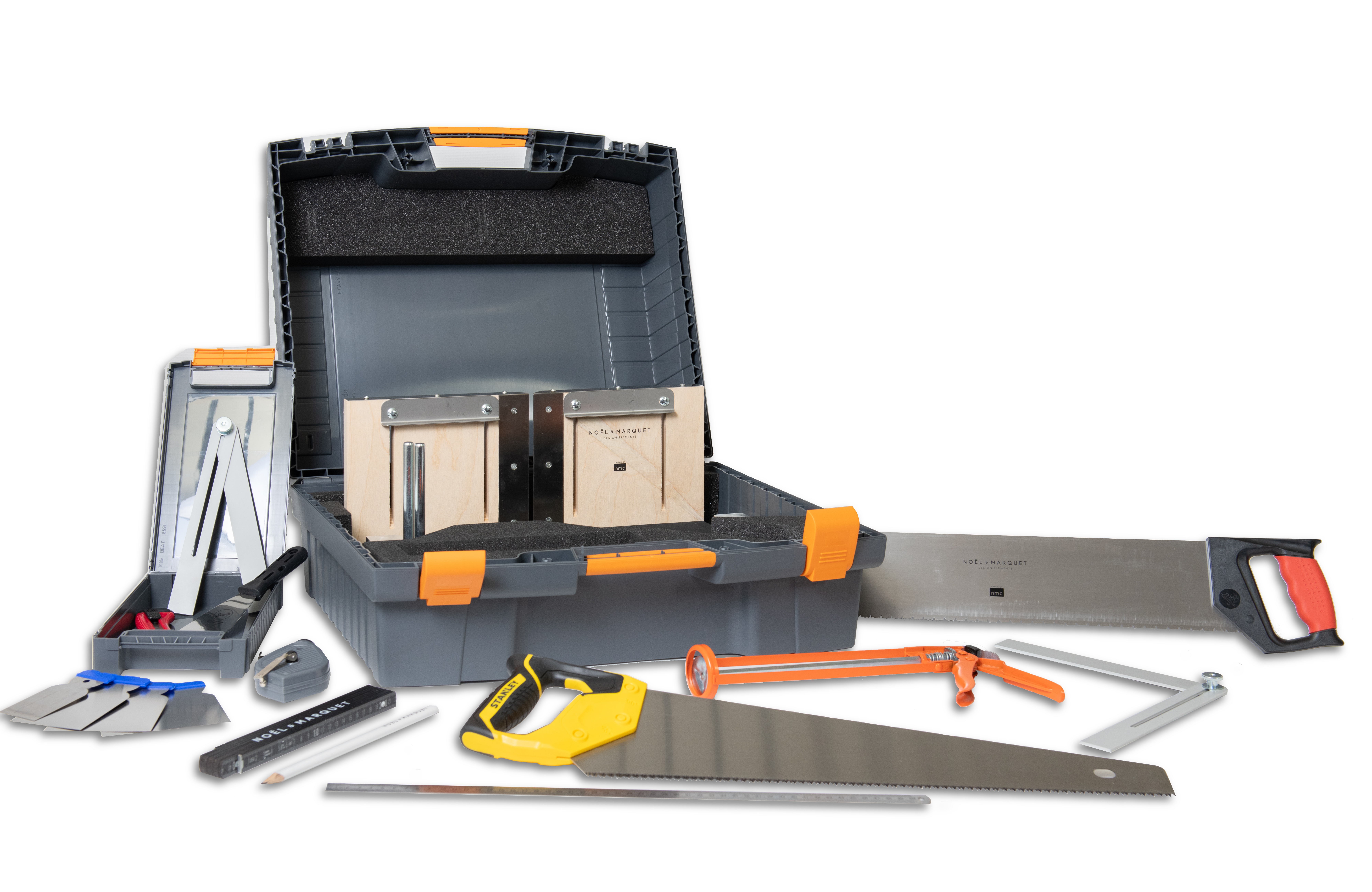 - Contenu de la valise : boîte à onglets V ARIO, scie PS et scie HDPS/PU de 50cm, règle en acier, équerre mobile, pistolet pour cartouche, cordeau, cutter, mètre pliant, lot de spatules dite japonaises, spatule pour joints, crayon