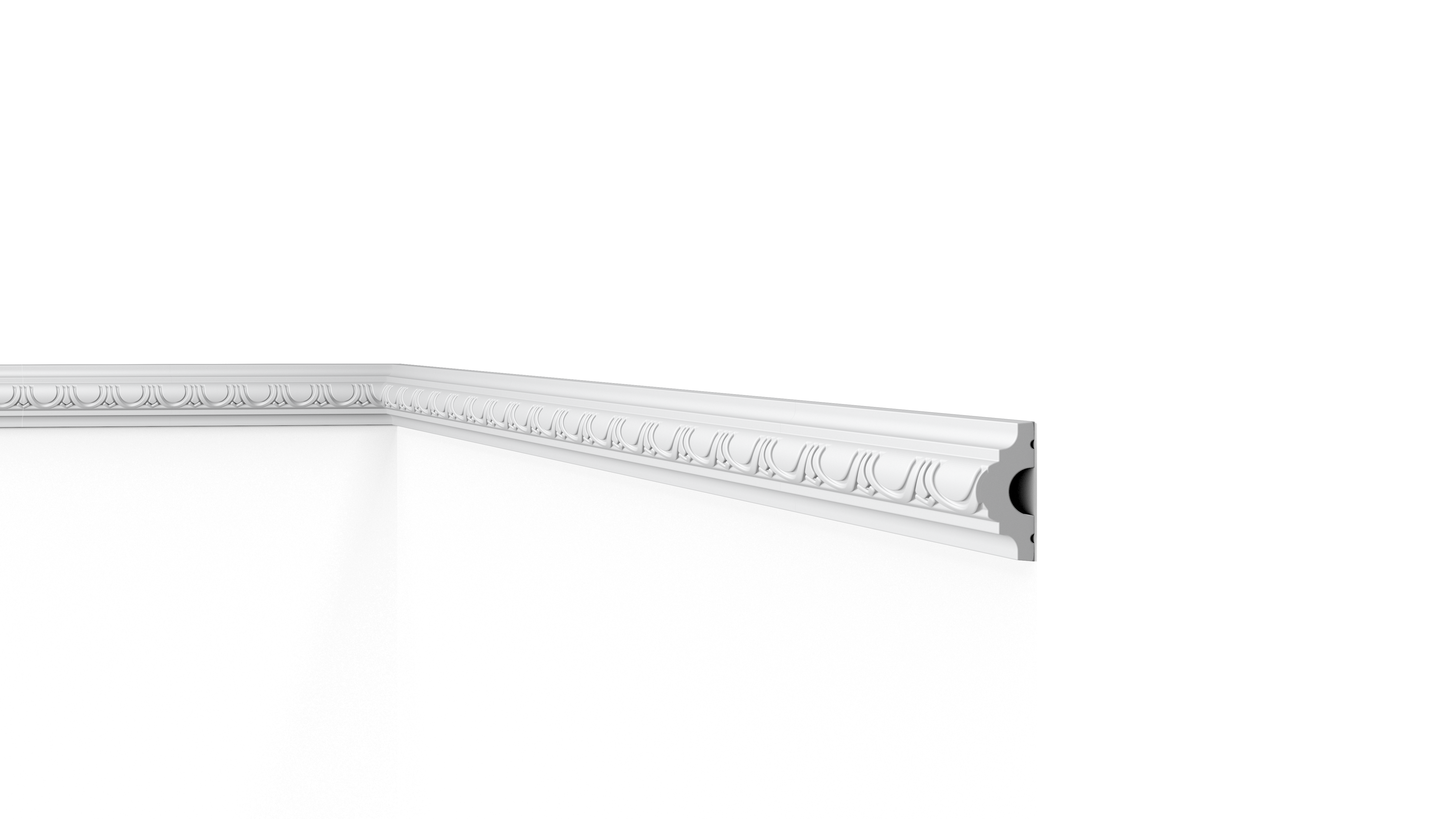 La cimaise WO1 WALLSTYL® est prête à peindre dans la couleur finale choisie grâce à une couche de primaire appliquée en usine. Le polystyrène à haute densité est léger, ce qui simplifie l’installation sur le mur ou au plafond.