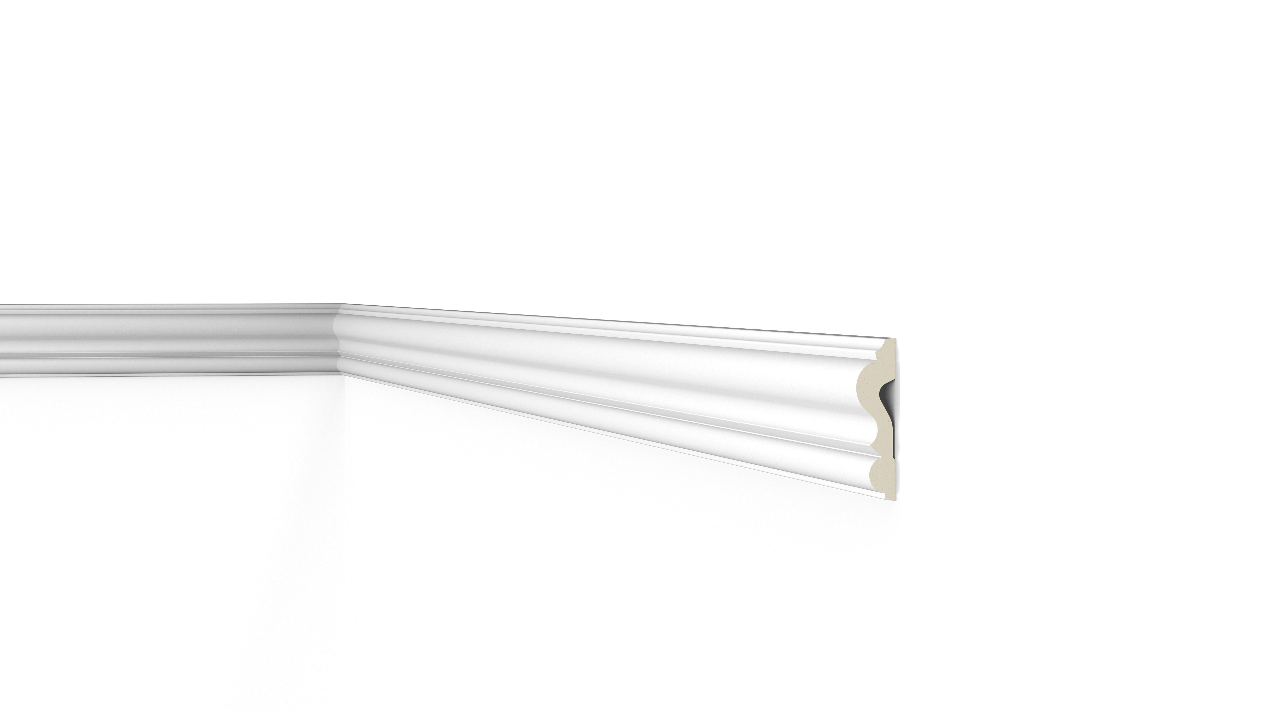 La cimaise Z1360 ARSTYL® est déjà apprêtée et prête à recevoir sa couche finale de peinture. Son design élégant est doté d'un logement à l'arrière permettant de dissimuler des câbles, pour une finition impeccable. Facile à couper, coller et installer. Le matériau est léger et résistant aux chocs.
