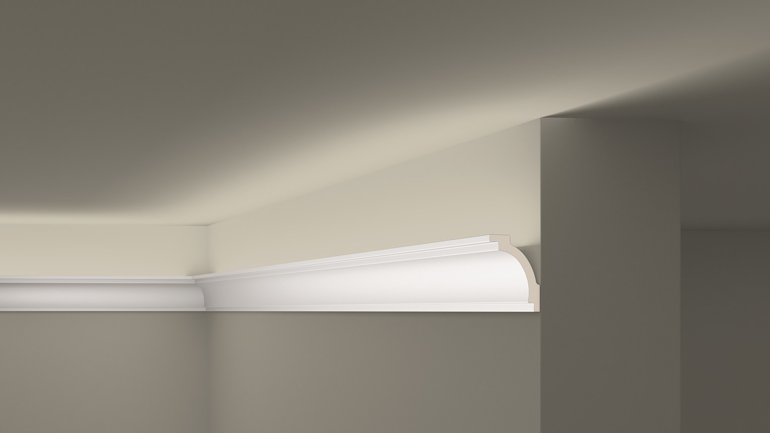 L’élégante moulure de plafond Z16 ARSTYL® offre une transition harmonieuse entre le mur et le plafond. La moulure Z16 peut être utilisée avec un éclairage LED indirect, donnant ainsi une sensation chaleureuse et conviviale. Qu’il soit utilisé seul ou combiné à l’éclairage, le profilé pour éclairage Z16 apporte un élément élégant aux locaux commerciaux ou aux maisons. La simplicité de cette moulure de plafond est idéale pour les intérieurs modernes et traditionnels.