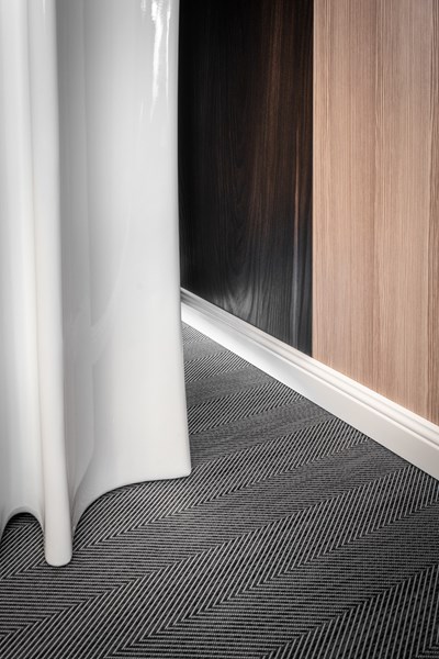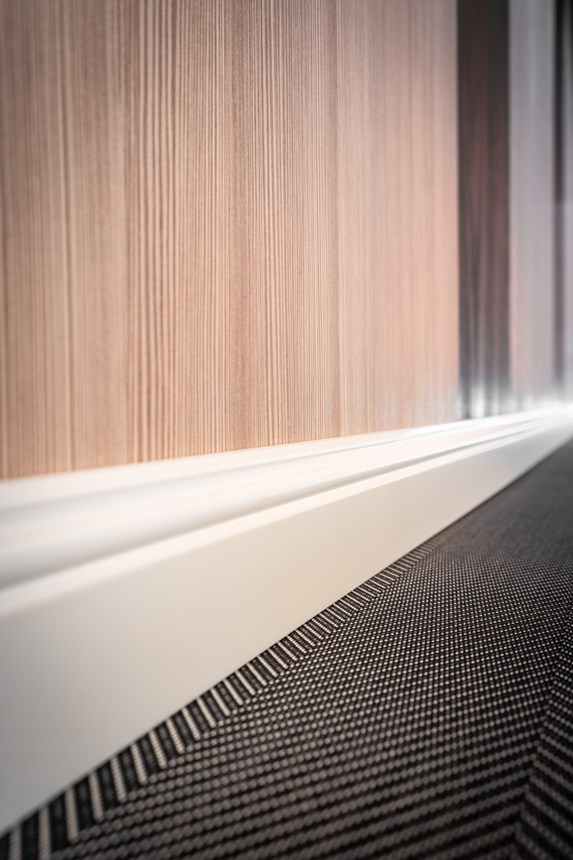 Le mur arrière composé de panneaux muraux 3D Pyramid Arstyl est un hommage à la texture et aux applications en cuir d’une Bentley. Lors de la sélection des matériaux, le modèle Pyramid a convaincu les designers par son langage clair et sa capacité à donner aux murs une structure tridimensionnelle intéressante. La forme simple du panneau mural s’intègre harmonieusement dans l’environnement créé par Dr Israr. Avec une taille de 190 x 1135 mm x 18,5 mm (H x L x P), les panneaux sont rapidement installés et offrent beaucoup de liberté dans la conception grâce à leur forme étroite.