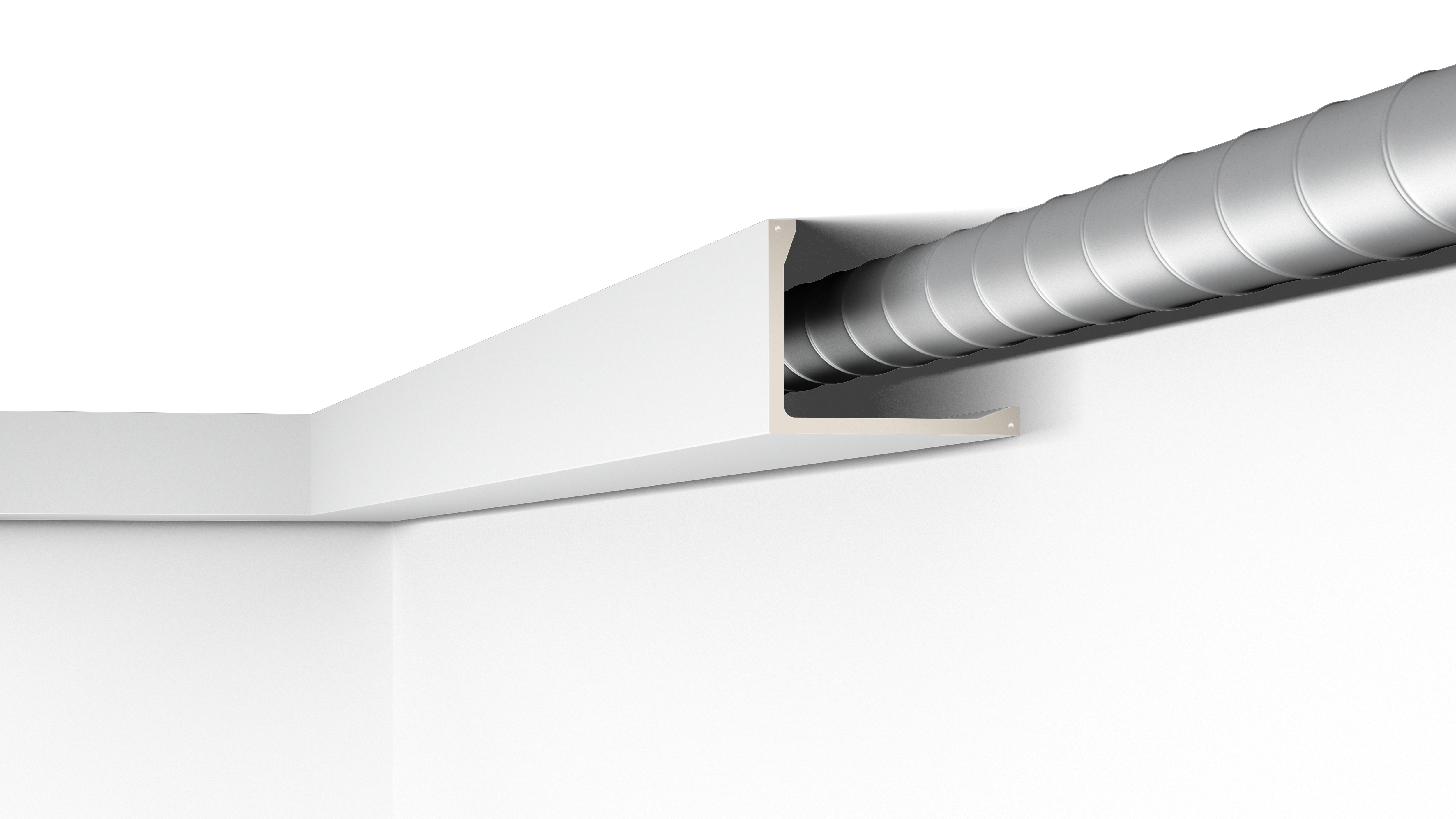 Il profilo L2 si posa facilmente con la colla ADEFIX®. Dietro questo profilo funzionale è presente un ampio spazio per nascondere vari componenti antiestetici. Il L2 ARSTYL® è fornito già primerizzato e pronto per la verniciatura nel colore desiderato.