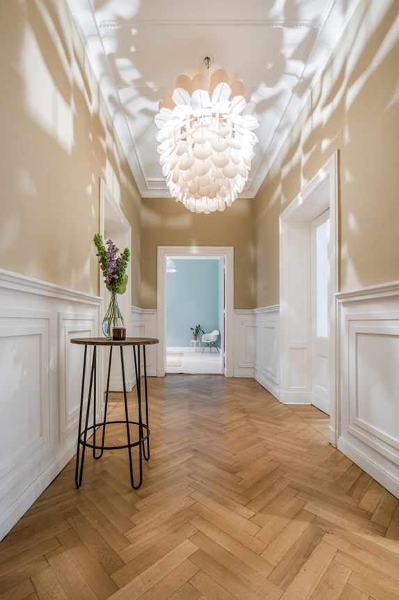 I listelli di NOËL & MARQUET si trovano in tutte le stanze delle due location. È sempre bellissimo vedere come i vari listelli riescano a trasformare completamente un ambiente. I cambiamenti si notano soprattutto nel Carl Fritz, più nuovo e fresco di restauro: “Le persone che conoscevano la superficie di prima ed entrano qui dentro, a volte pensano di aver sbagliato il piano dell’edificio, perché si trovano di fronte un ambiente al quale abbiamo dato un look del tutto nuovo”, ci racconta Kathrin con orgoglio.