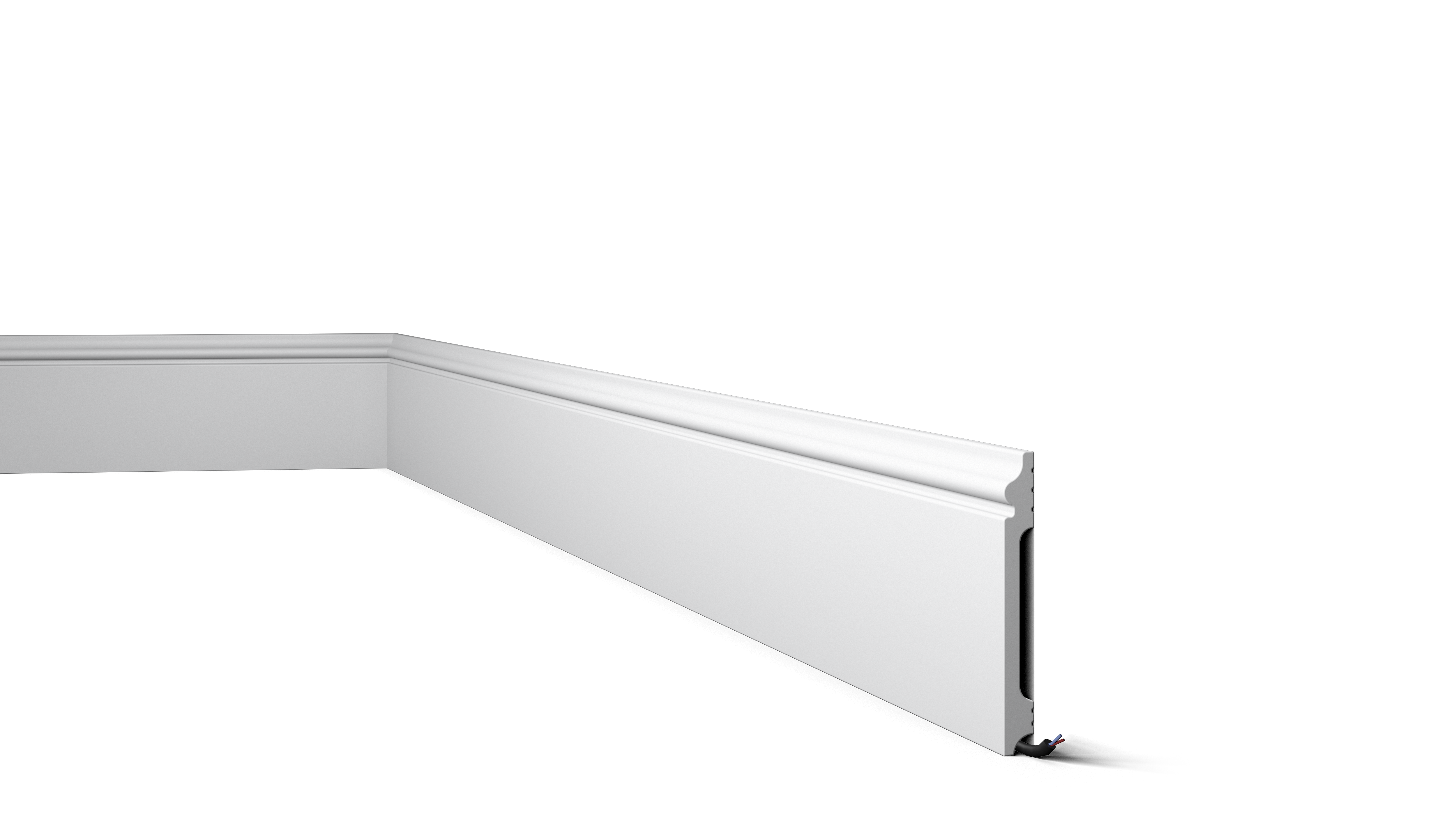 De smalle open ruimte achter de FL14-plint is bedoeld om kabels weg te werken en eventuele kleine oneffenheden tussen muur en vloer te verbergen. Het hoge dichtheid polystyreen is vocht- en stootbestendig en toch zeer licht en makkelijk te snijden, wat een snelle en moeiteloze plaatsing mogelijk maakt. Bovendien is de FL14-plint voorzien van een primerlaag, zodat ze onmiddellijk in om het even welke kleur kan worden geschilderd.