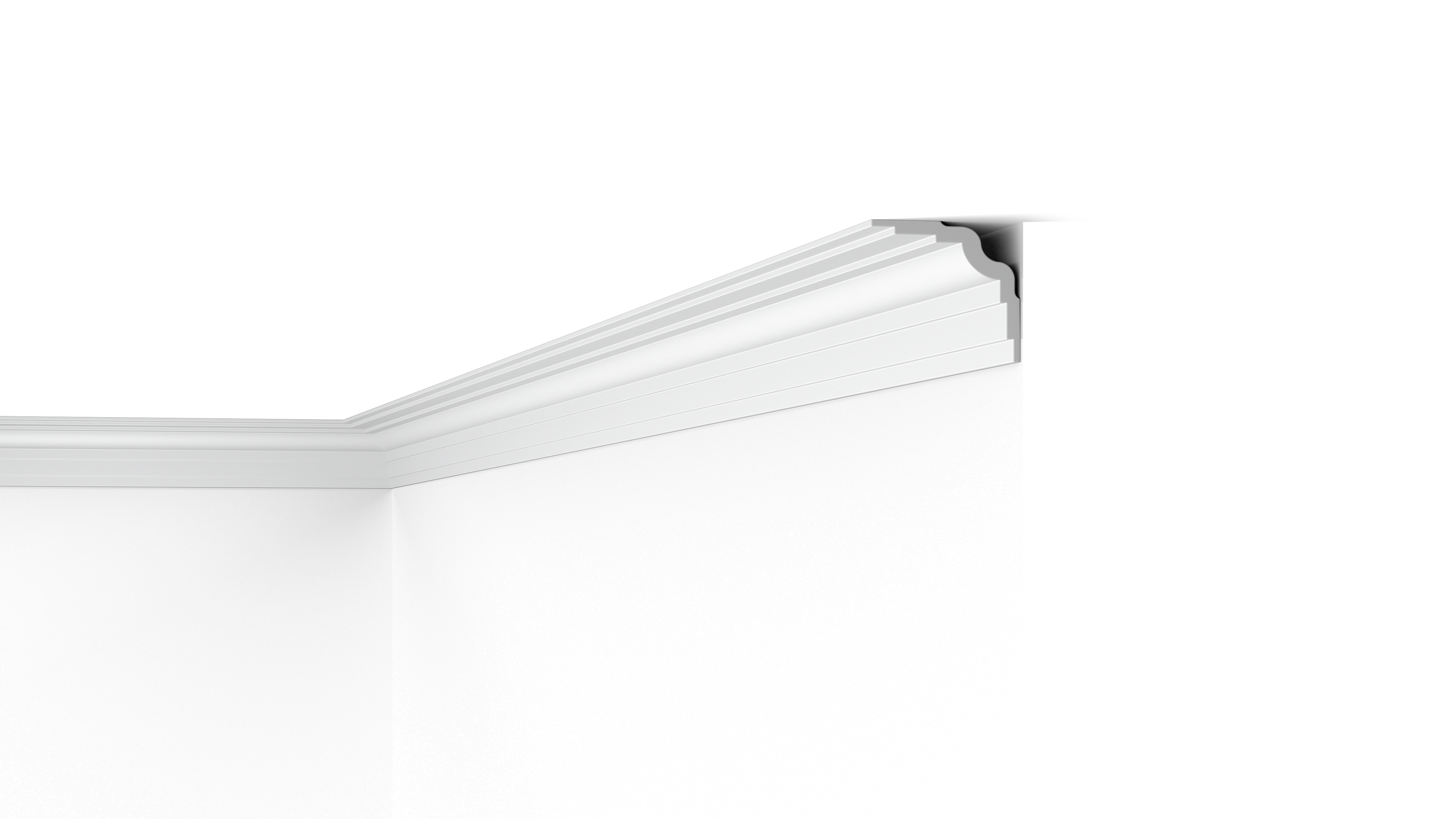 Plafondlijsten, stoelplinten, vloerplinten en wanddecoratie om te combineren met directe of indirecte verlichting. Ze creëren een gezellige