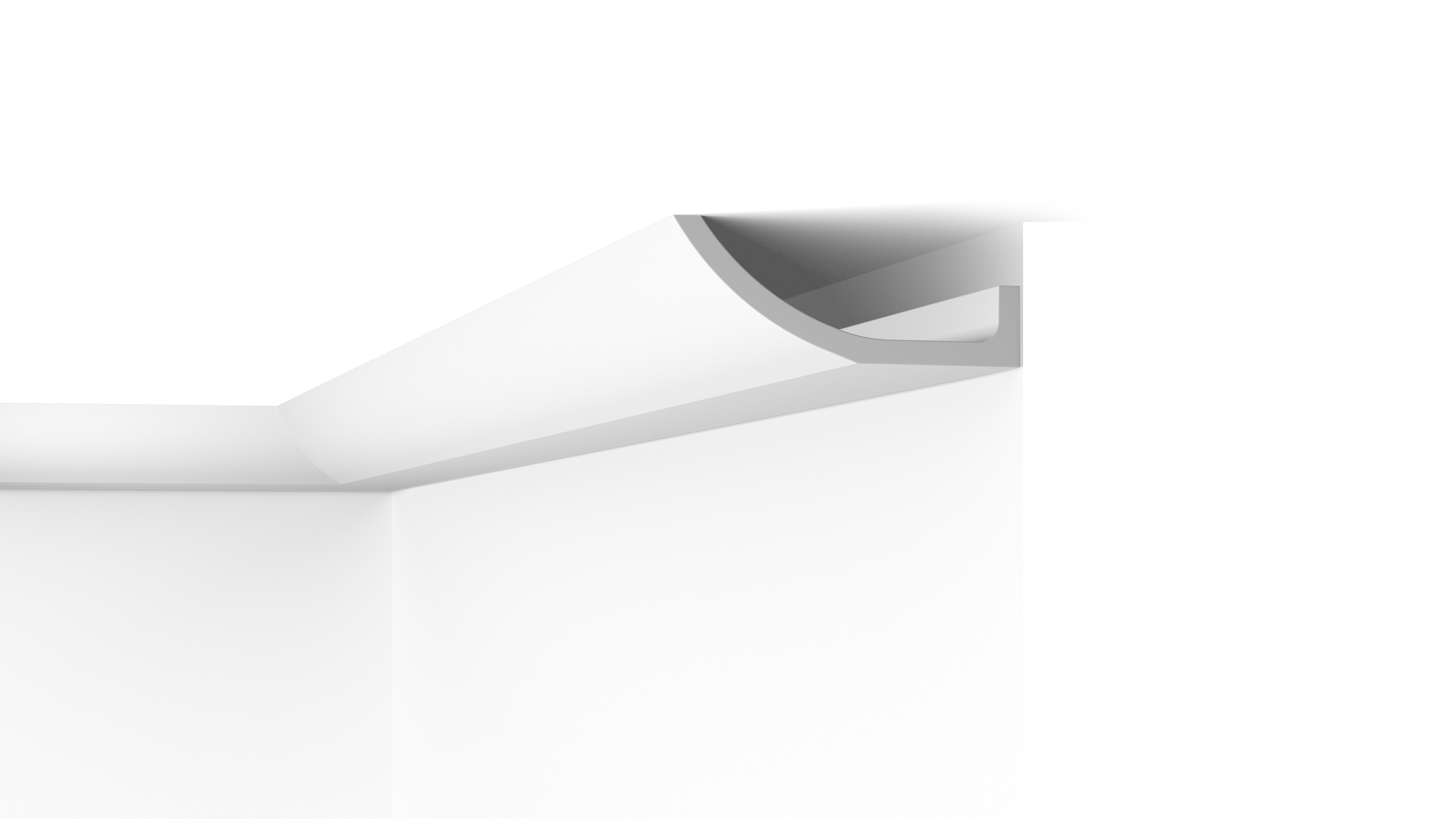 De zachte ronding van de WT4 plafondlijst is een aantrekkelijk kenmerk. Dit elegante en sobere design leent zich zelfs voor de meest dynamische interieurstijlen.