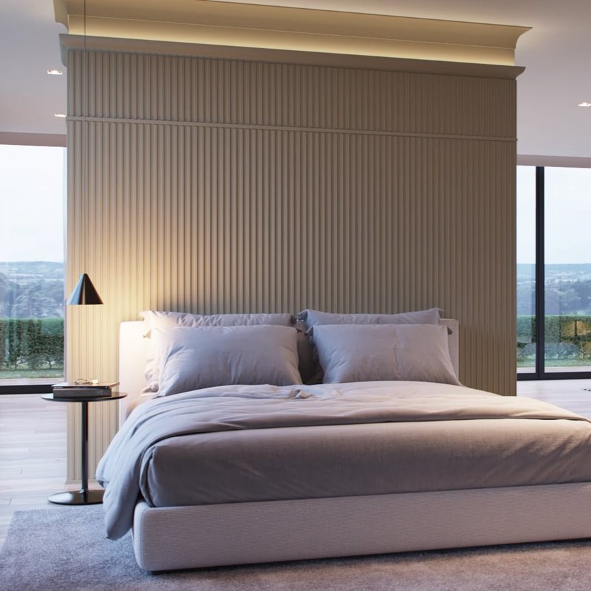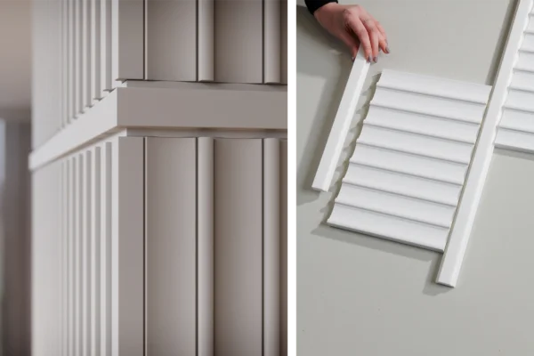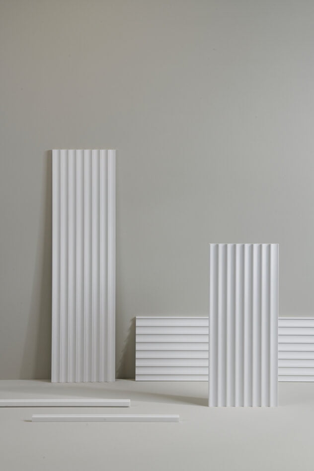 Zoals de naam al aangeeft, verwijst het lineaire Dorique element naar het oppervlak van de zuilen die kenmerkend zijn voor de oude Griekse architectuur. Deze verticaal geplaatste panelen met cannelures accentueren de hoogte van een muur en zorgen voor een andere ruimtebeleving.