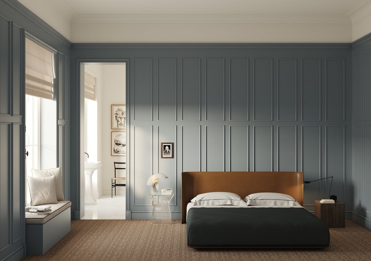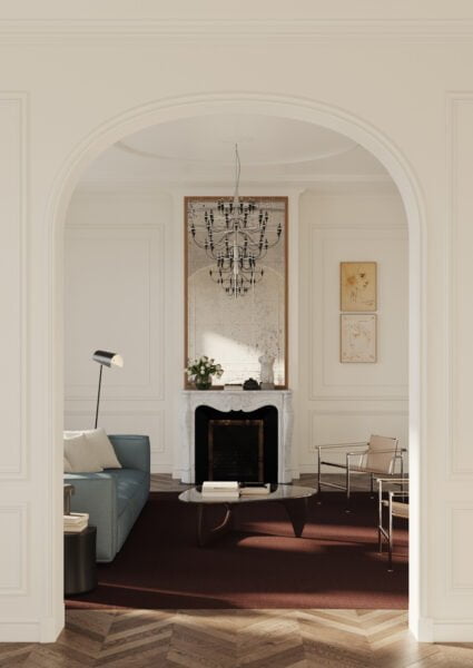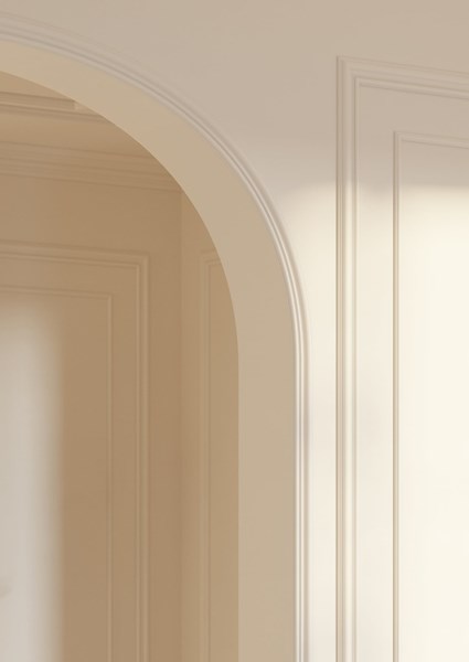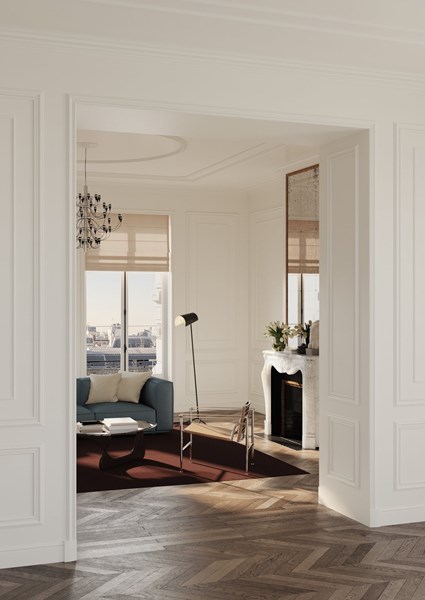 Ons flexibel wandprofiel volgt de welving van de doorgang en accentueert de rijkdom aan details in dit Parijse interieur.
