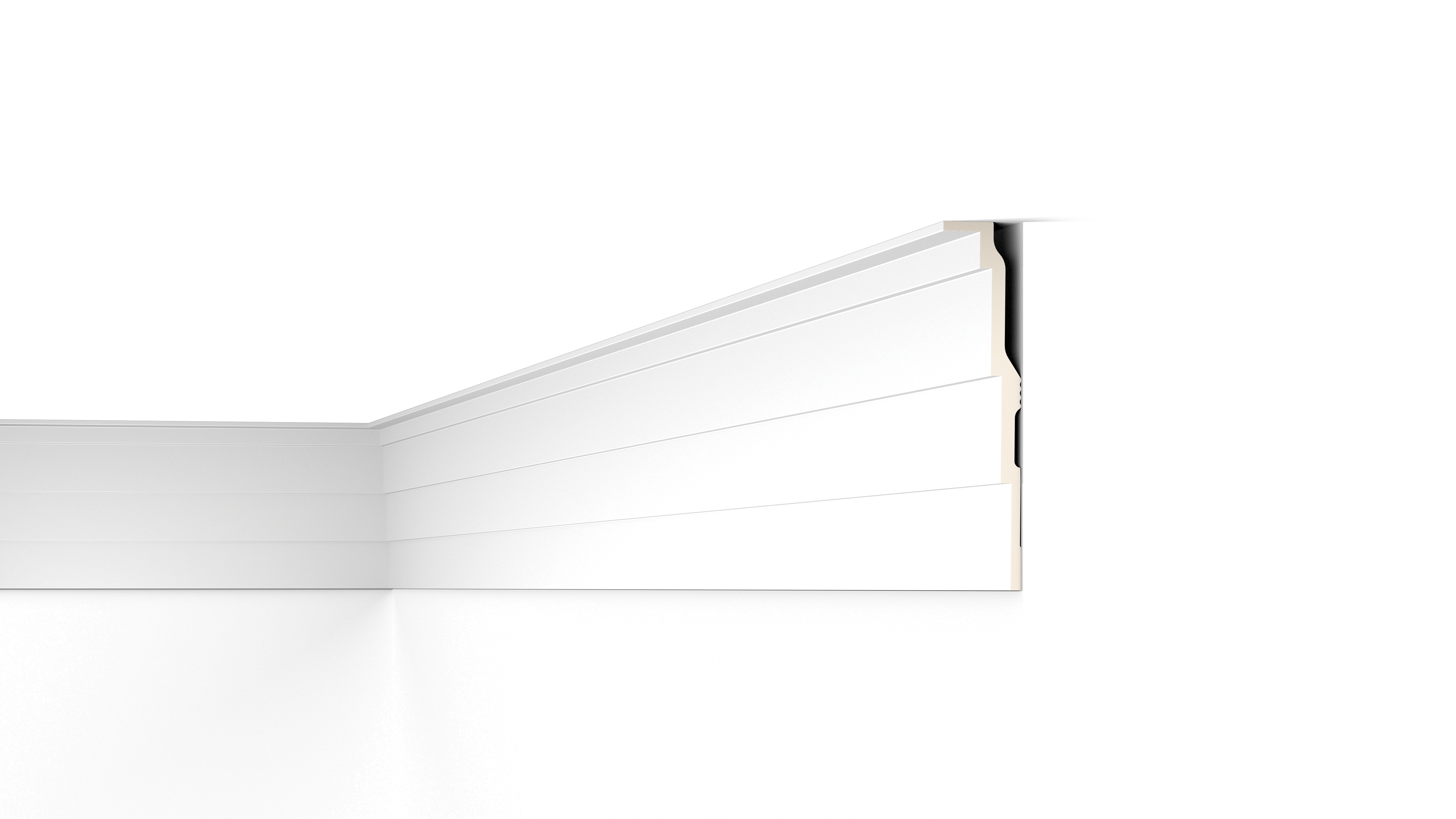 Карнизи, стінові молдінги та елементи, підлогові плінтуси, що поєднуються з прямим або прихованим освітленням - створені